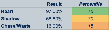 His swing decisions in two strike counts were also excellent, swinging at just about everything right down the middle but remaining relatively picky overall:
